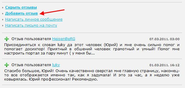 Ссылка на добавления отзыва и отображение уже добавленных отзывов: