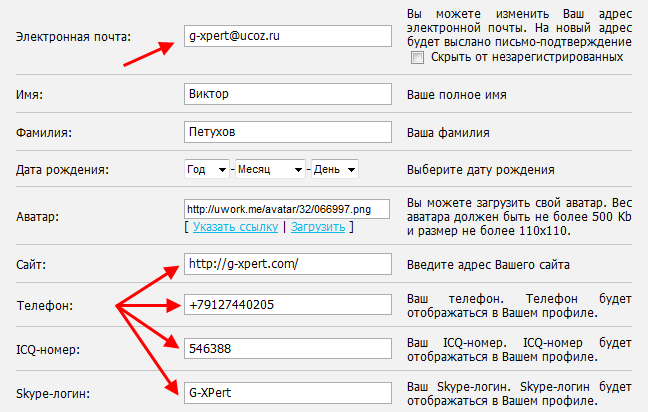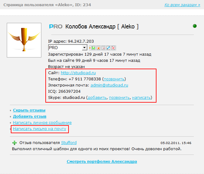 ICQ, Skype и номер телефона будут отображаться (для фрилансеров) на странице со списком фрилансеров: