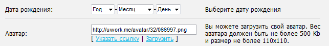 На странице настройки аккаунта также можно указать дату своего рождения (возраст) и загрузить (или указать ссылку) аватар/фотографию: